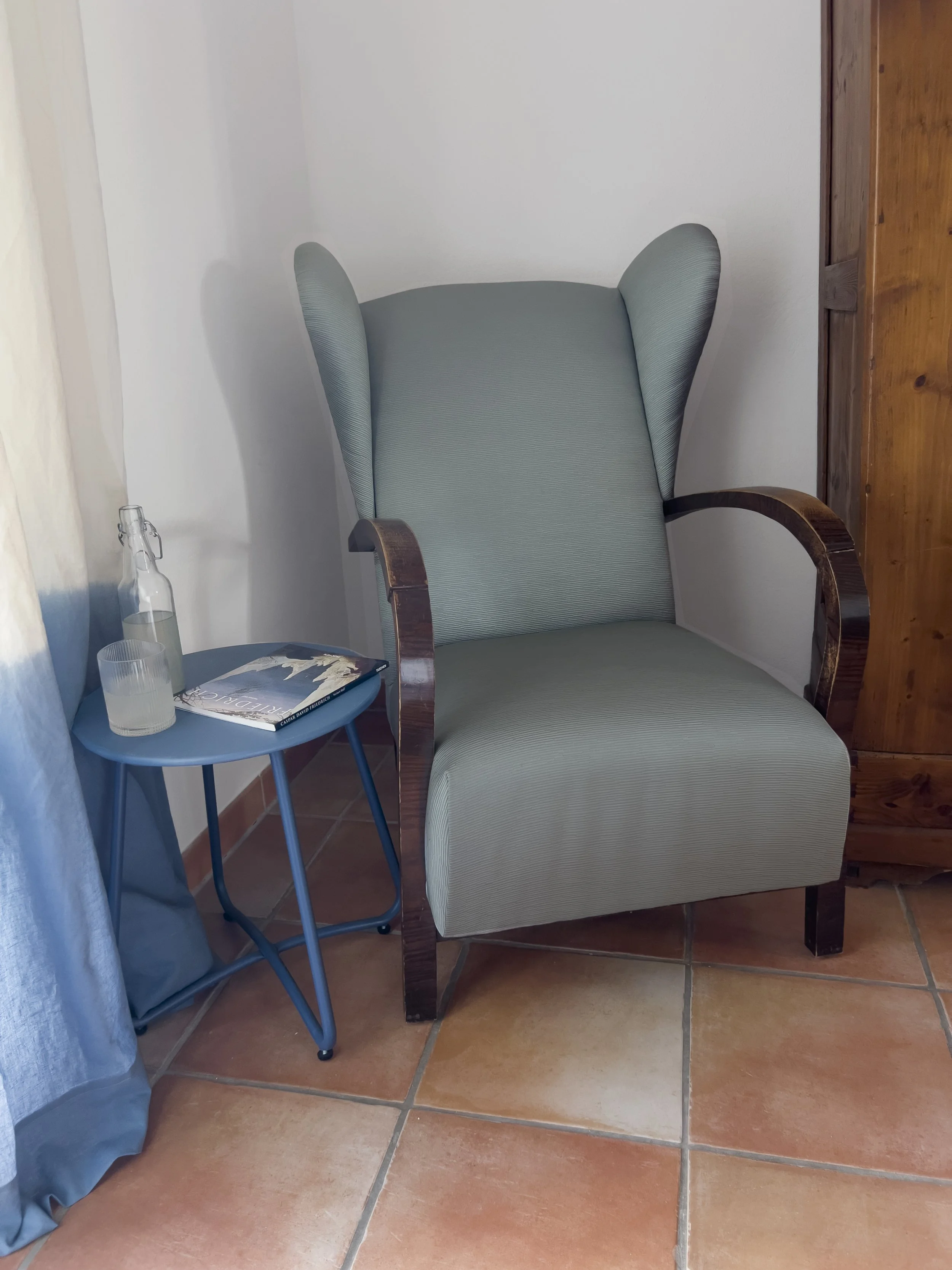 Das Designkonzept verbindet Alt und Neu, um eine organisch gewachsene Ausstattung zu schaffen. Gemeinsam mit der Kundin habe ich die Ausstattung in Berlin geplant, beschafft und nach Italien transportiert. Die Vintage- und antiken Möbel sowie die textilen Elemente wurden vor Ort angepasst. Stoffe der mailändischen Designerin Lisa Corti, sowie lokale Fundstücke vom Flohmarkt verorten das Projekt lokal.